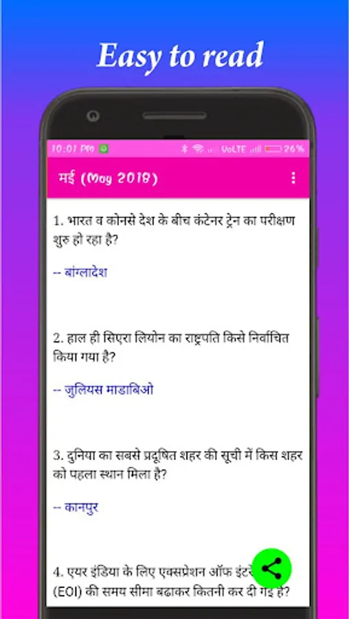 Which may prove to be extremely important for all upcoming competition examinations. Through this app, you will endeavor to provide questions and answers to all the current affairs of that month at the end of each month. So keep updating this app continuously through the Play Store every month, so that you are always up-to-date.