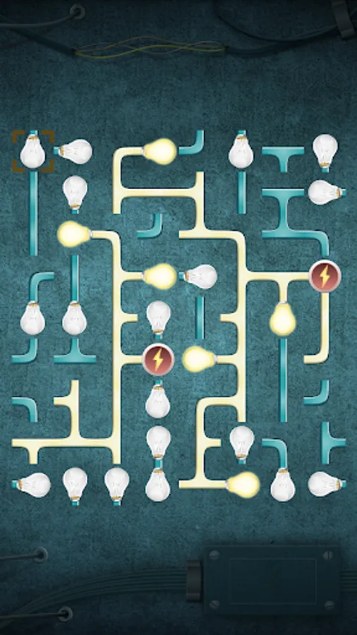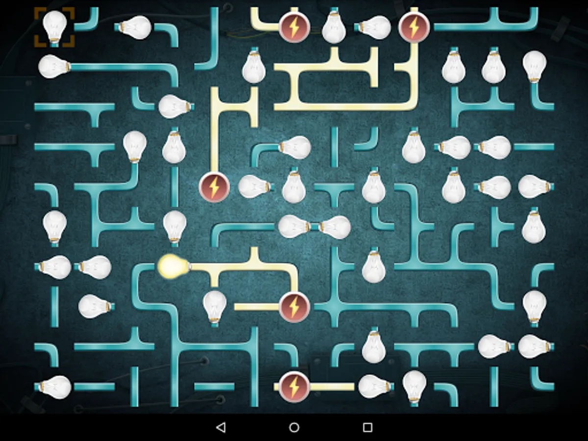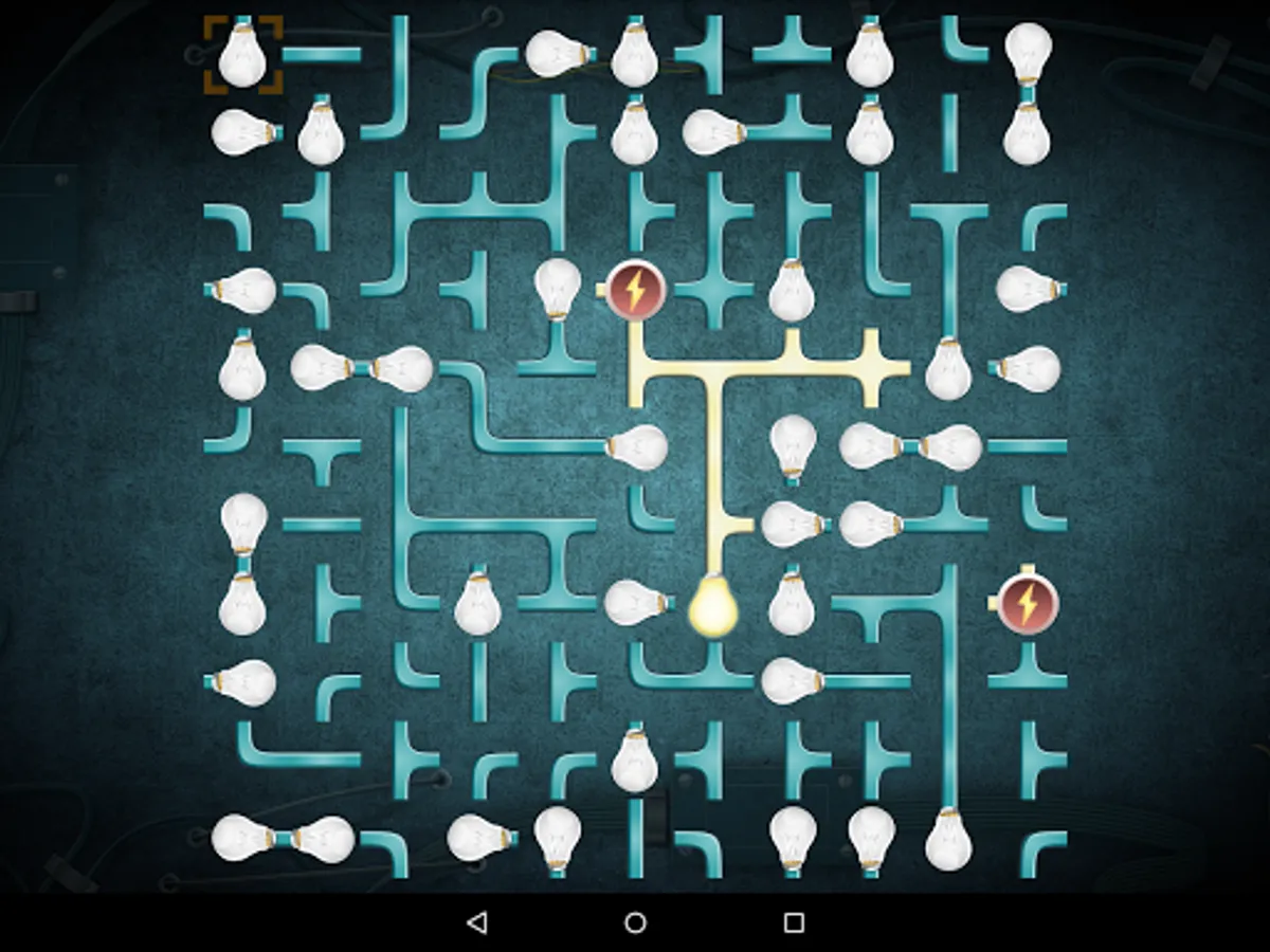 The goal of the game is to connect all the lamps to accumulators. You can use arrows to choose required connector. Tap the screen to rotate connectors. Tiles connected to the accumulator are highlighted. Zoom is available for some large game fields. Use your fingers to perform pinch to zoom gesture just like in an Android gallery. Use the menu to select difficulty level, generate new level, view help or exit game.