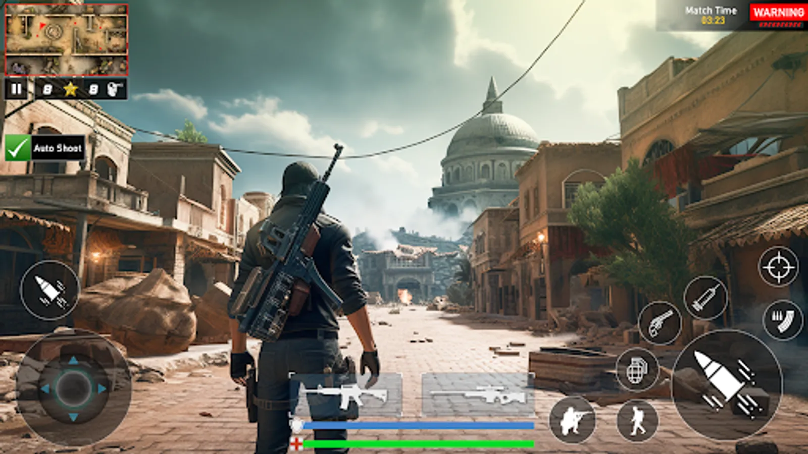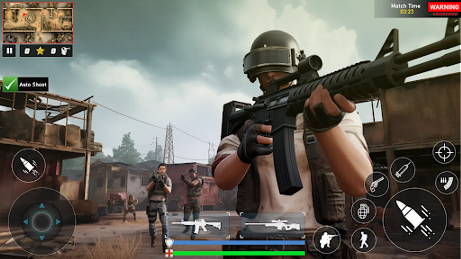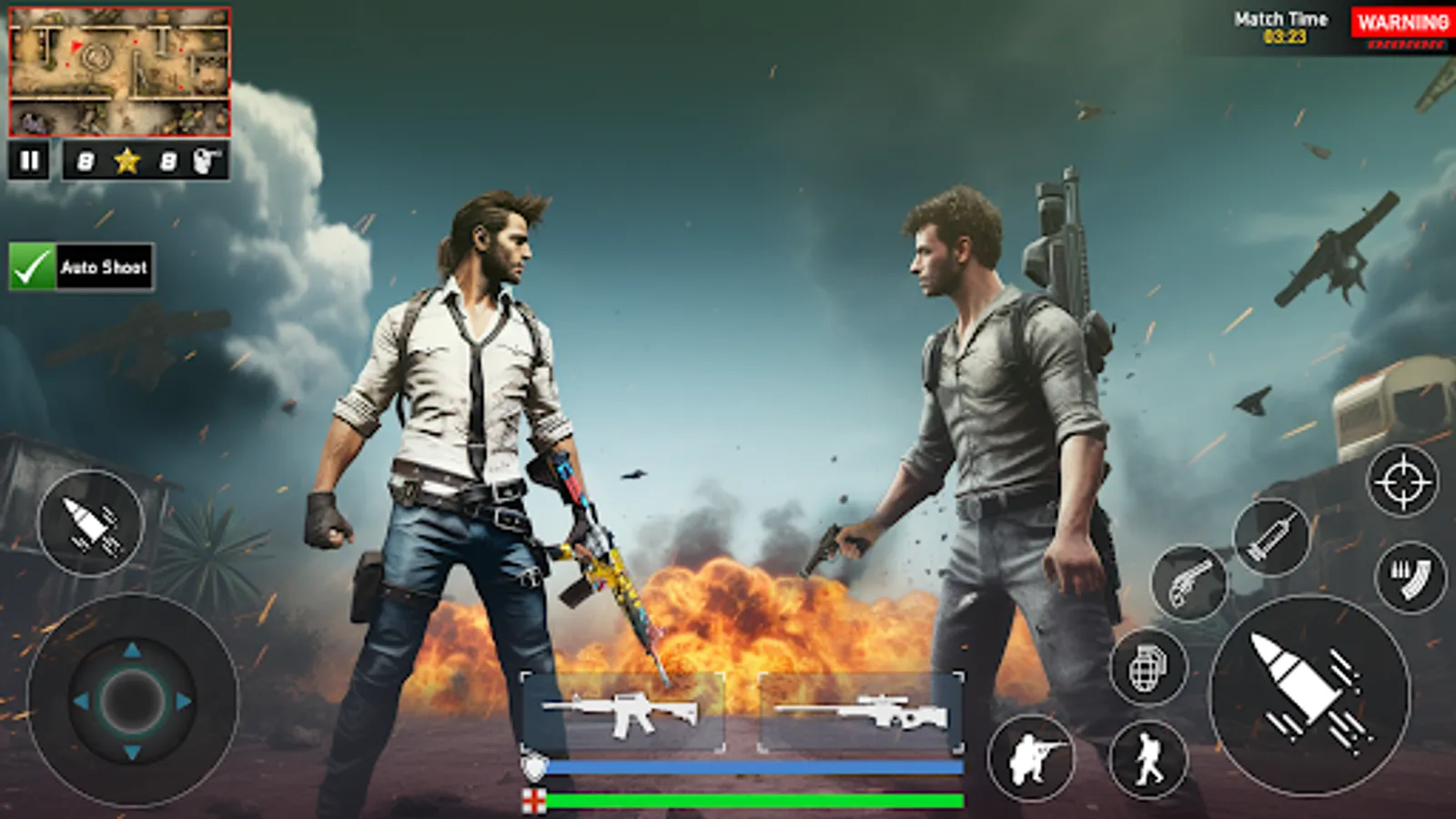FPS Shooter war game Showdown offers an extensive selection of realistic firearms, ranging from classic pistols and sniper rifles. Customize your load out to suit your play style and optimize your chances of victory in this fun shooting offline games.