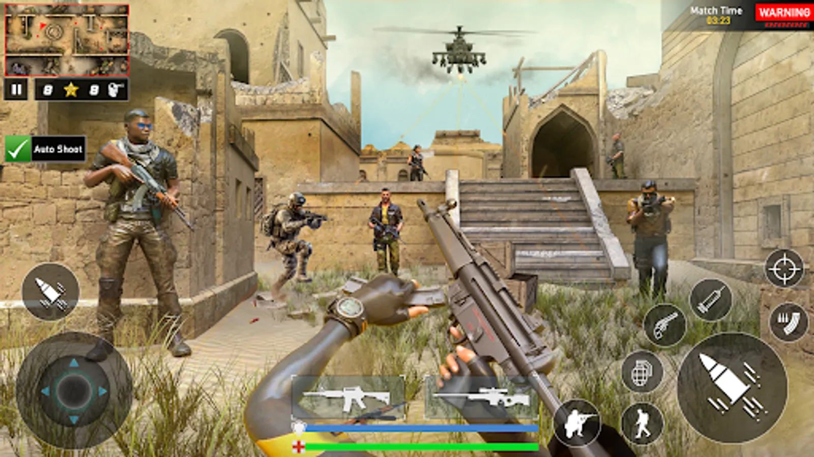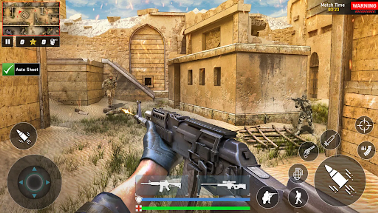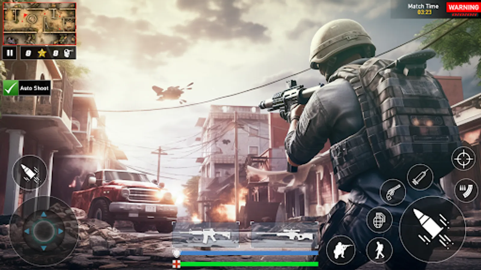 In the heart of FPS shooting gun game 3D. City Mode plunges players into the midst of intense urban warfare. Navigate through designed city streets, towering skyscrapers, and in this tactical battles against enemy forces in this world cover fire game & online shooting game. City Mode's realistic graphics and immersive sound effects make every feel like a cinematic action sequence, creating an unparalleled gaming experience in this offline gun shooting Fps Game.