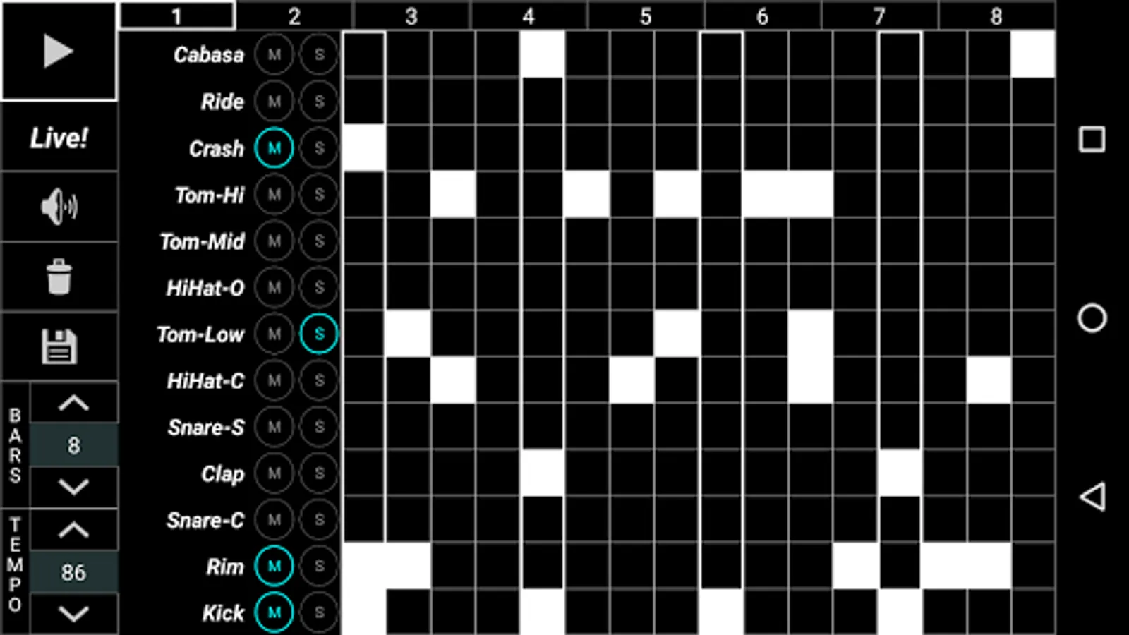 This Drum Sequencer uses a modern interface for sequence composition to let you create great beats. The drum sounds are made to imitate the historic Roland TR-909 Rhythm Composer. No Permissions are required to use this app. There are no Ads in this app. This app is 100% Free to download and use.