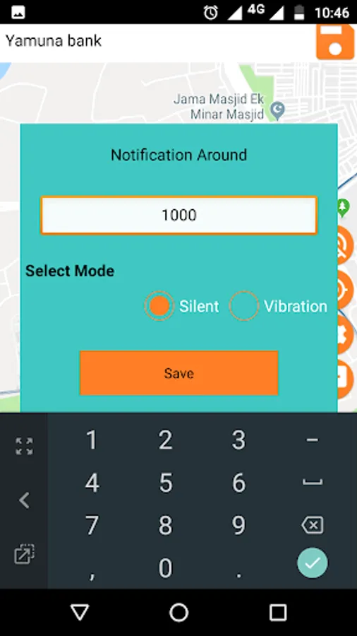 # Search & Save Location: Search location on map and also can drag and drop markers on particular location and save that location. Set the range in meters so that when you come near to that location your phone will automatically switch to silent mode and when you out of that range it will automatically switch to normal mode.