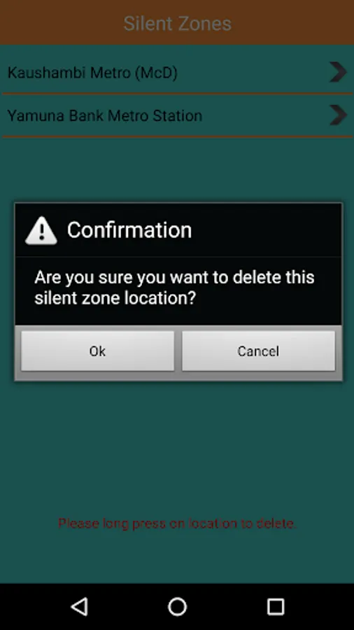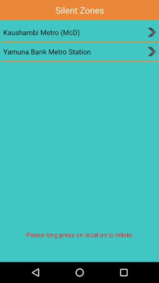 # Silent Zone List: To View all the silent zones setup by you. Long press to remove silent zone location.