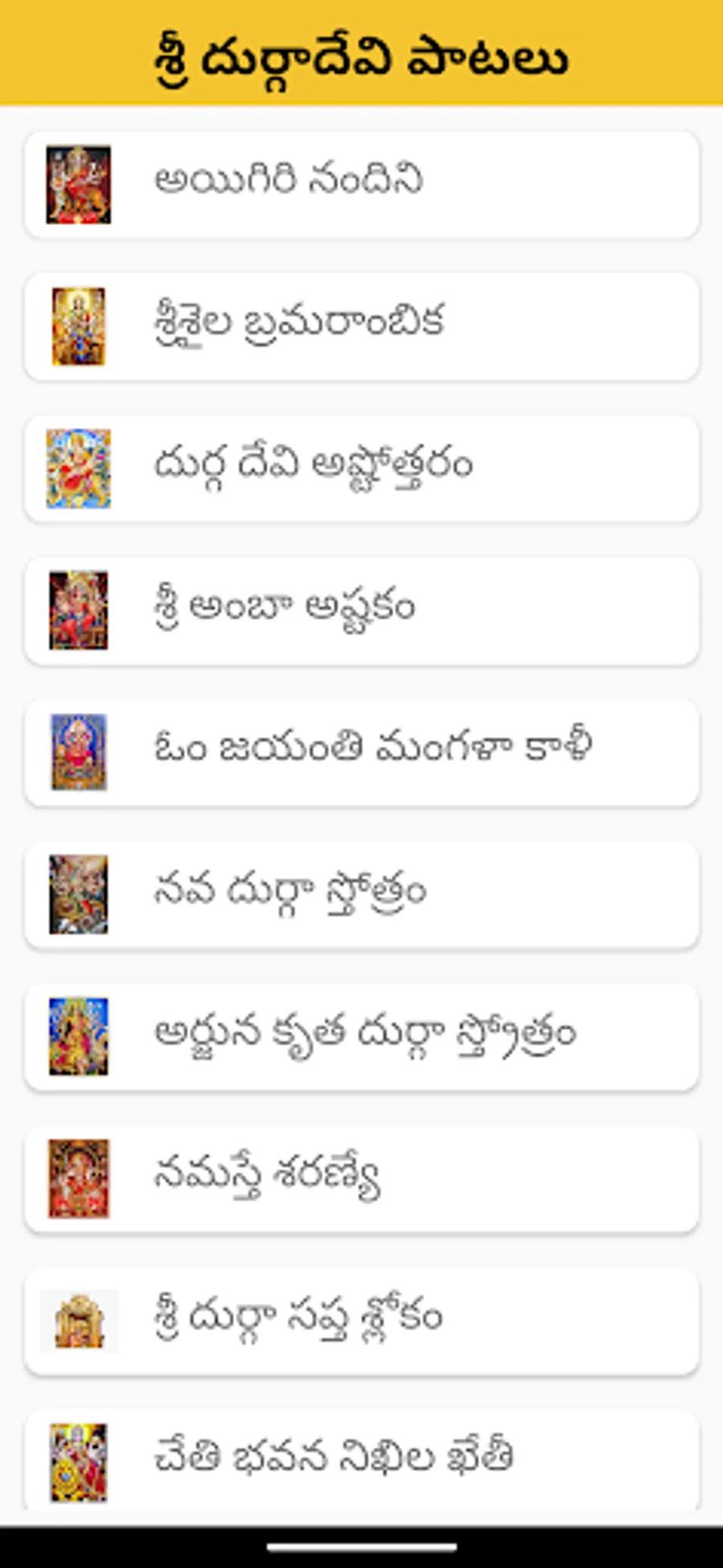 This app "Sri Durga Devi Songs" contains Sri Durga Devi devotional songs in Telugu also known as sri Durga Devi bhakti paatalu in telugu.