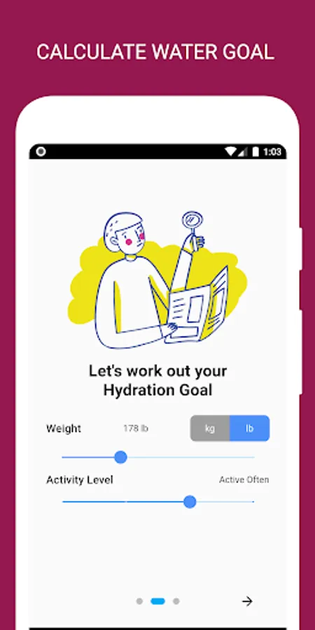 Not sure where to start? It's simple, just use our formula to calculate your ideal water intake, then set up our smart water reminders to alert you at the right time to drink more water.