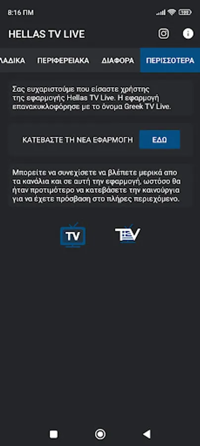 Within the Hellas TV Live application you will also find Greek Series, the live program and the next one (Greek TV Epg), but you will still have the option to manually add your favorite Greek Channels that are absent from our app.