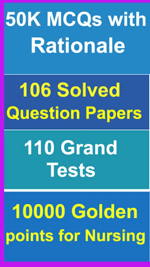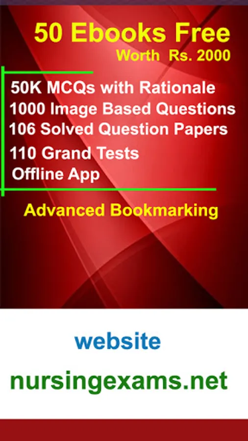 • 50000+ Subject Wise Questions with RATIONALE for all Nursing Exams