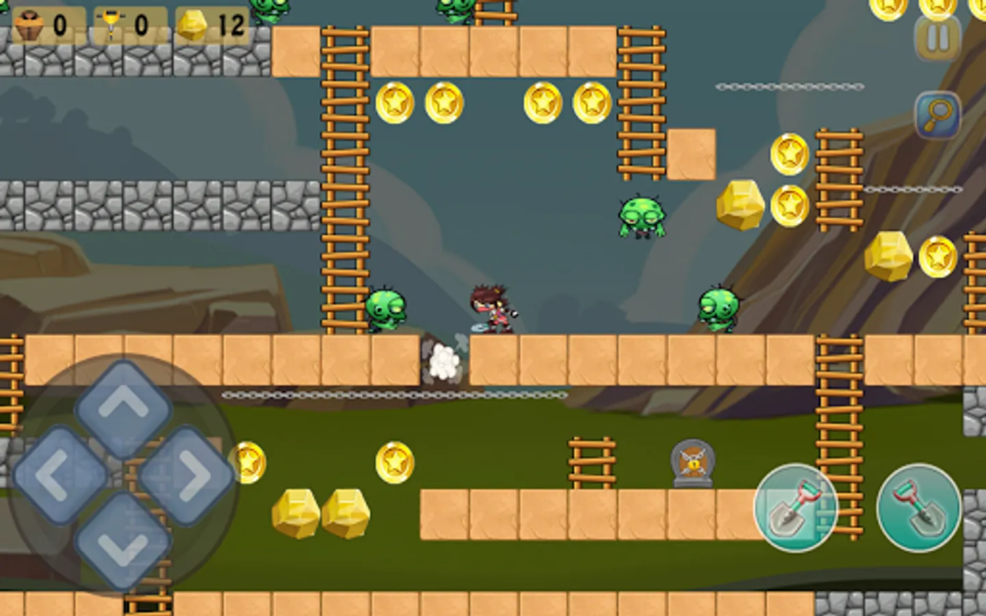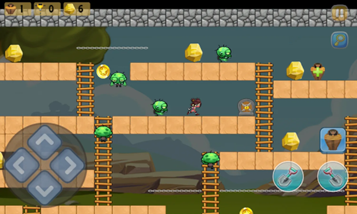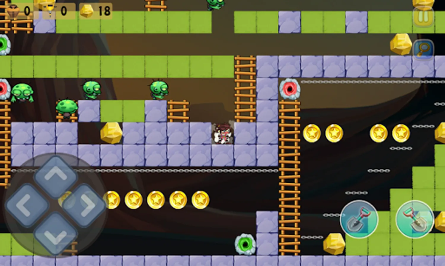 In each level you must strategically dig brick to trap enemies and find all golds or also called lode or mine to open the exit door to get next level.