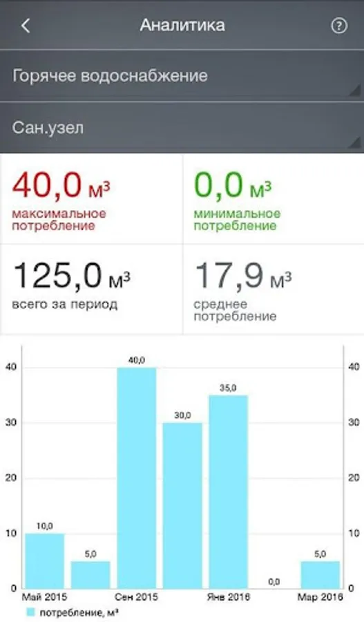 - View the charts by services consumption, average, maximum and minimum values of the transmitted readings in the "matrix"