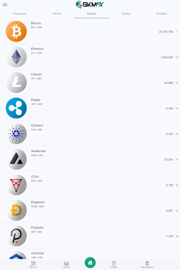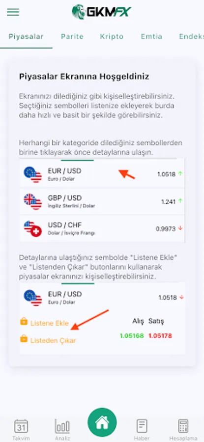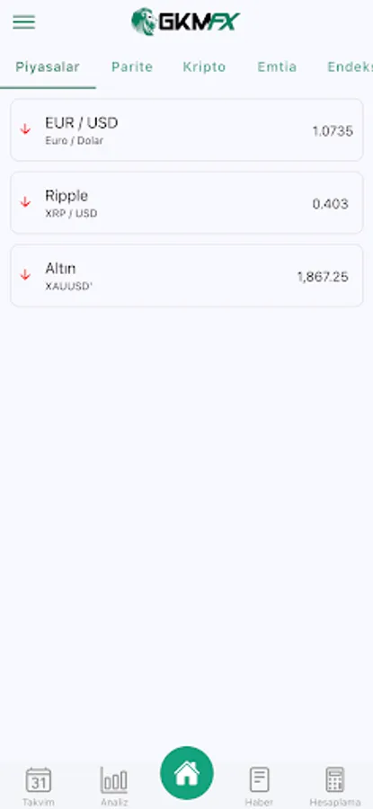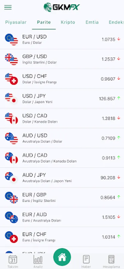 GKMFX users can follow all the markets instantly and see the status of the parities added to their list on the customizable homepage. You can read special analyzes and my news, and make your calculations between cross rates.