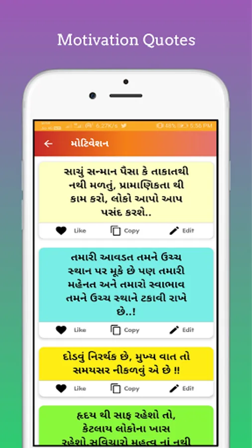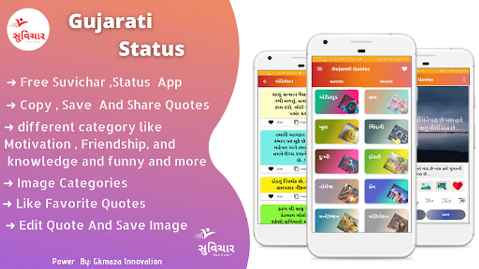Gujarati Quotes App has the largest collection of Gujarati status and quotes. You can get many categories wise different messages.