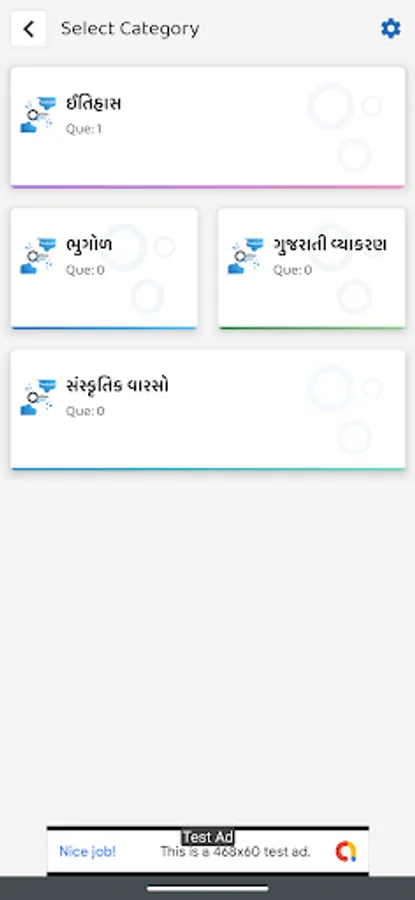 1. Quiz Zone : Where you can play subject wise quizzes. Every question have 4 options, you have to choose right 1 out of 4. Here you can play Gujarati Grammar, History, Geography, Maths, English Grammar, Gujarati Sahitya, Reasoning And other Subjects Quizzes.