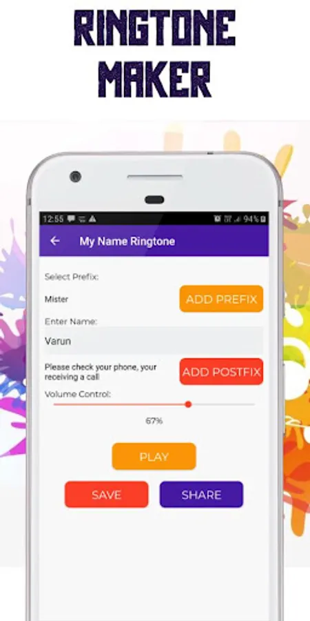 Simply leave the boring & regular ringtones and one can create ringtone using any names. My Name ringtone maker is the best app for making voice name ringtone as your favorite tune, not only for your own name. You can create ringtone using any name and for anyone using this name ringtone maker application.