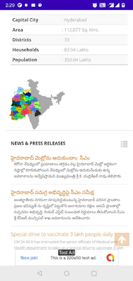 Through this application, you can view complete profile of Telangana & its Services provided to public.