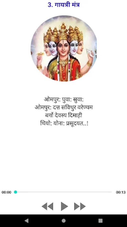 Gayatri is the one who glides through the three states of consciousness joyfully, playfully, effortlessly and lightly, as though it were a song. When we 'sing through' something, it means it is not a burden for us. 'Gayanti translate iti gayatri'. The Gayatri mantra affects all the three states of consciousness, jagrut (waking), sushupt (deep sleep), swapna (dream) and the three layers of existence adhyatmik, adidhaivik and adibhautik. Traya also refers to the taapatraya or the ailments (taapa) that adversely affect the body, mind and soul: the body by physical ailments, the mind by negativity and restlessness in the soul. The Gayatri Shakti (energy or field of vibration) enables one to transcend and be unaffected by the tapatraya's.