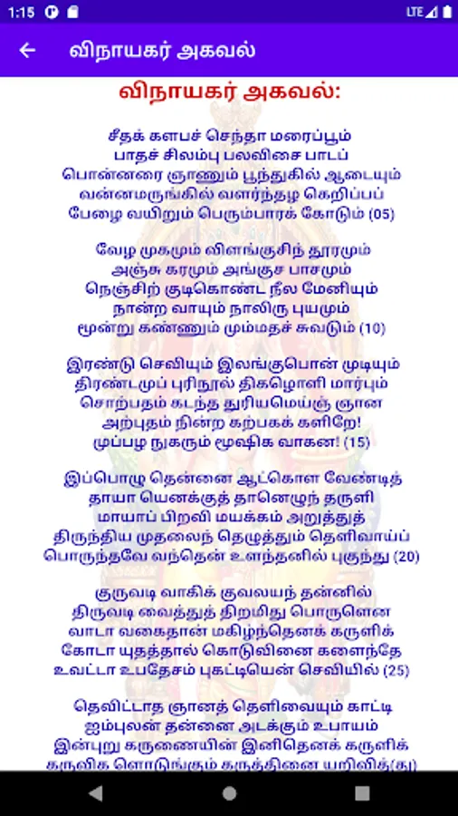 விநாயகர் அகவல் (விநாயகர் விருத்தம்) என்பது இந்து தெய்வமான விநாயகரின்பக்தி கவிதை. இது 10 ஆம் நூற்றாண்டில் சோழ வம்சத்தின் போது தமிழ் கவிஞர் ஒவ்வையரால் இயக்கப்பட்டதாகும் இது அவரது மிகப் பெரிய கவிதை என்று கருதப்படுகிறது. இந்து ஆன்மீக நம்பிக்கை மற்றும் நடைமுறை பற்றிய அகவலின் விளக்கத்தையும், தெய்வத்திற்குக் காரணமான மனித வாழ்வின் போதனைகளின் அம்சங்களையும் பயன்படுத்துகிறது.