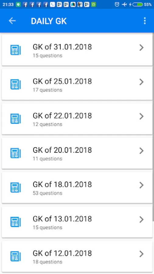 Daily GK is a source of Daily Current Affairs and GK. Our team add current affairs daily news regularly. This application help you in competitive exams as well as general knowledge exam. As you know general awareness questions with answers play important role for the preparation of UPSC and other competitive examinations. In Civil Services current affairs and general awareness is essential part of Examination. It will be also useful for job seekers who are looking to get recruited by government firms or any sarkari naukri or for any entrance exams. Internet connectivity is not required at all to use this app. Daily GK has latest Current Affairs 2017 - 18 and Daily updates for General Knowledge.