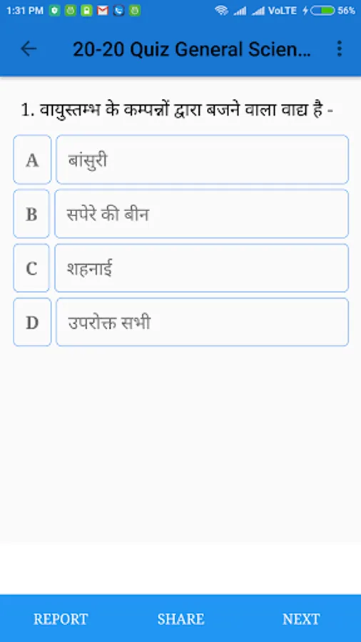 Objective type General Knowledge Questions are optional for all competitive examinations. 20-20 GK Quizzes are made by us to improve General knowledge in Hindi. We are going to provide a series of 20-20 GK apps for General Science, Current GK, Reasoning, Physics, Chemistry, Biology, History, Economics and almost all important subjects for UPS, SSC, and State PSC Examinations. We are committed to create quality apps for GK in Hindi.