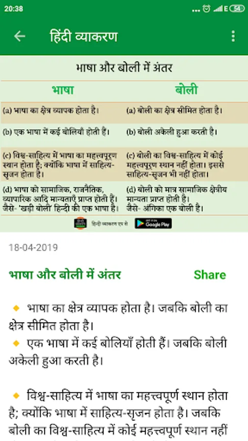 Hindi Grammar app Content