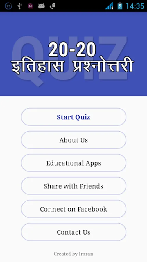 Objective type General Knowledge Questions are optional for all competitive examinations. 20-20 GK Quizzes are made by us to improve General knowledge in Hindi. We are going to provide a series of 20-20 GK apps for General Science, Current GK, Reasoning, Physics, Chemistry, Biology, History, Economics and almost all important subjects for UPS, SSC, and State PSC Examinations. We are committed to create quality apps for GK in Hindi.