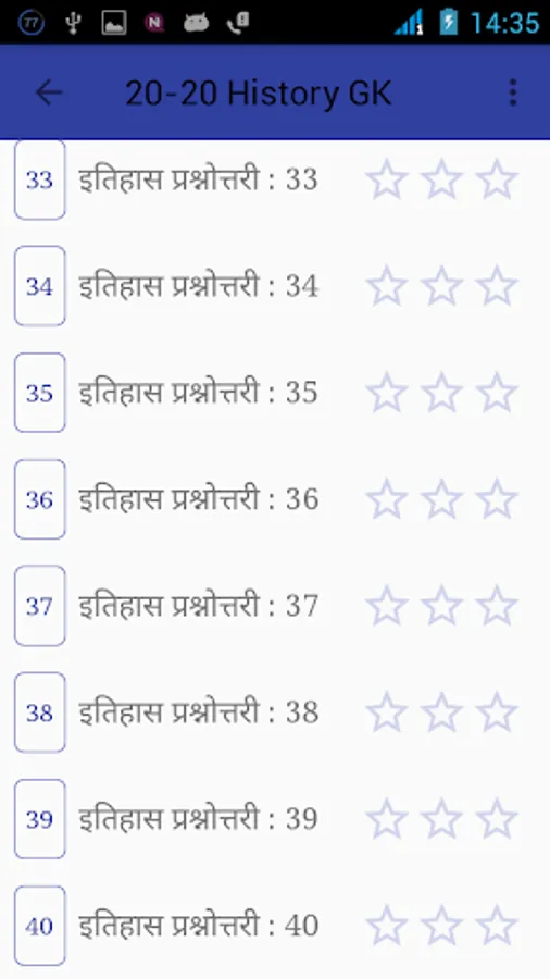 इतिहास प्रश्नोत्तरी जिसमे है 40 प्रश्नोत्तरी प्रत्येक 10वस्तुनिष्ठ प्रश्न समाहित किये | आप इस एप का प्रयोग कर महत्वपूर्ण 400 इतिहास के प्रश्न पर महारत हासिल कर सकते है जो परीक्षा में सफलता की दृष्टि से महत्वपूर्ण भूमिका निभा सकते है |