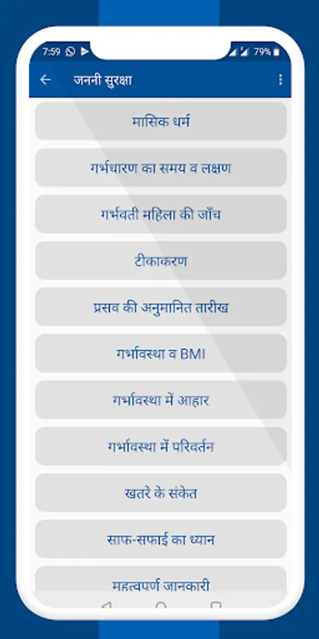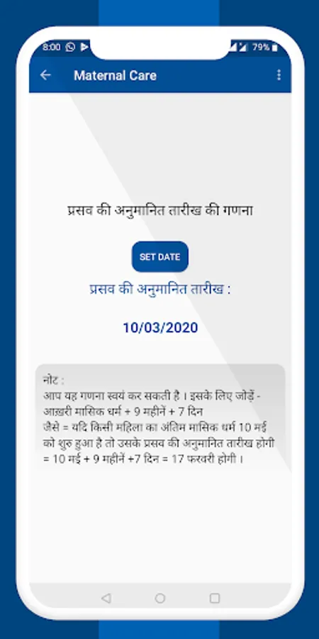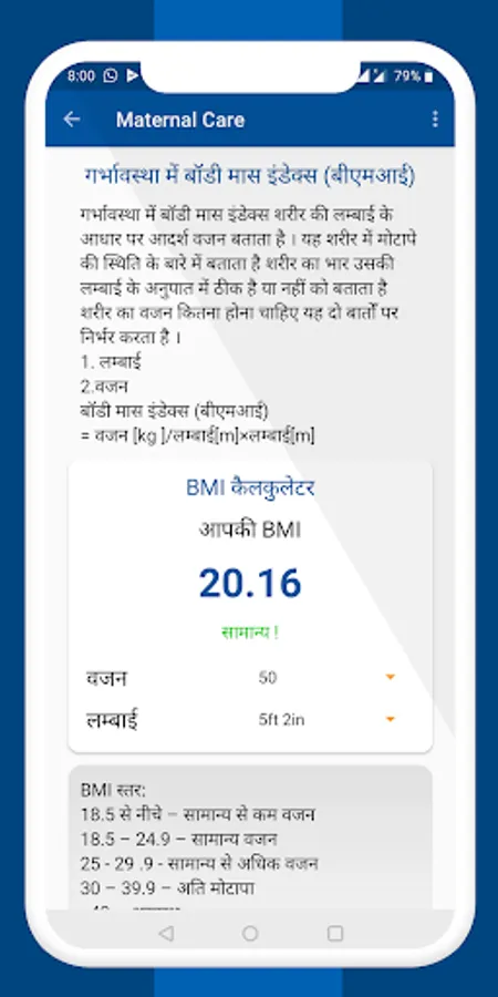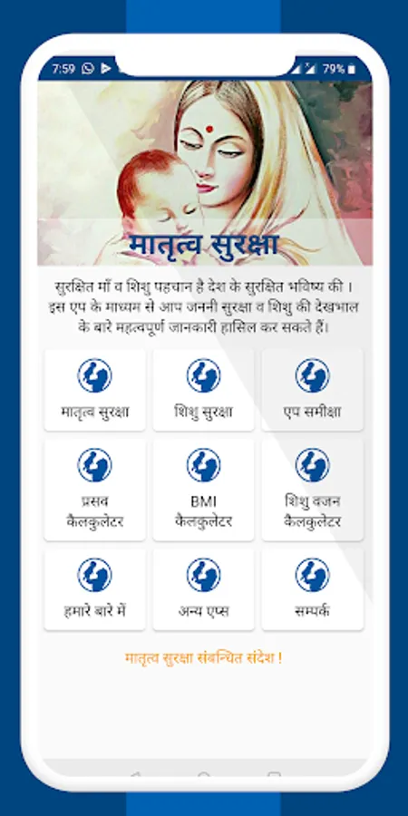 Maternal Care app in Hindi. Important information for mothers about pregnancy.