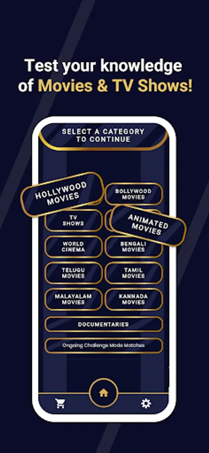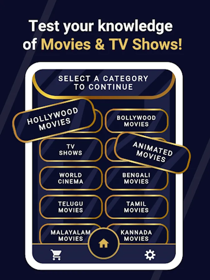 - 6 movie quiz categories for Indian movie fans: Bollywood, Tamil, Telugu, Kannada, Bengali, and Malayalam Movies.
