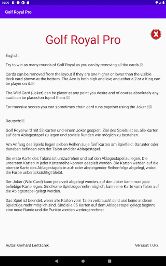 Golf Royal is played with 52 cards and a joker. The aim of the game is to put all cards on the discard pile and to pass as many rounds as possible.