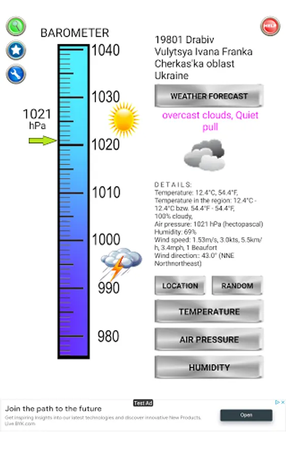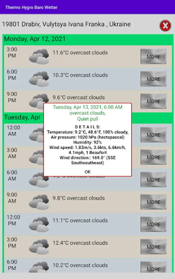 - Wind speed in s / m, knots, km / h, mph and Beaufort,