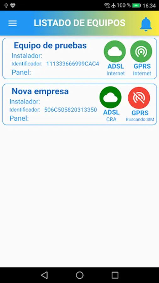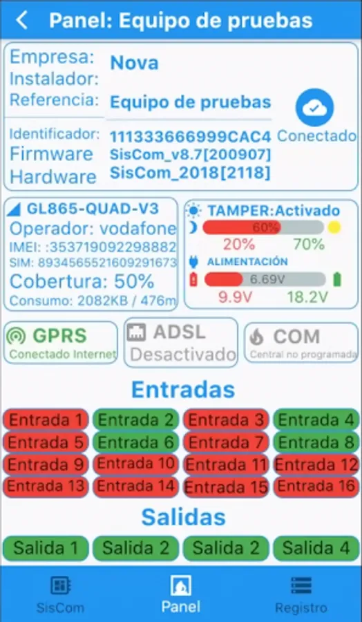 This application allows you to know the status of the SisCom module, consult the inputs and outputs and act on the latter. You can also see the latest events that have occurred.