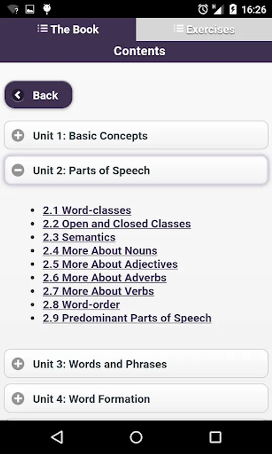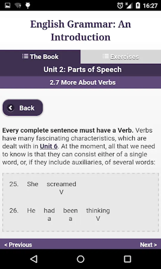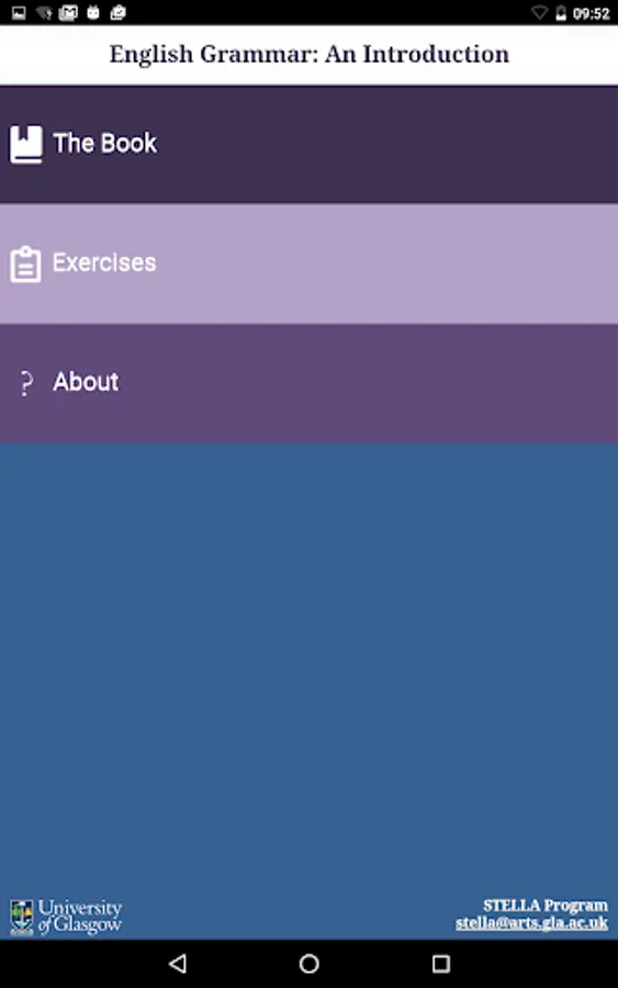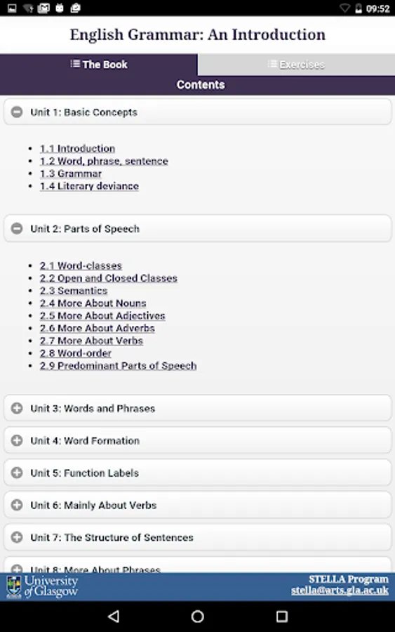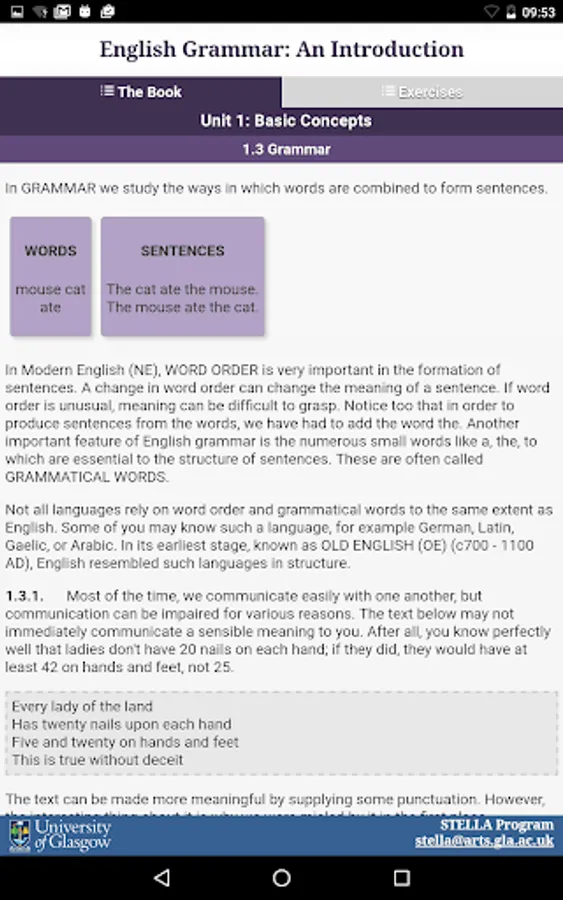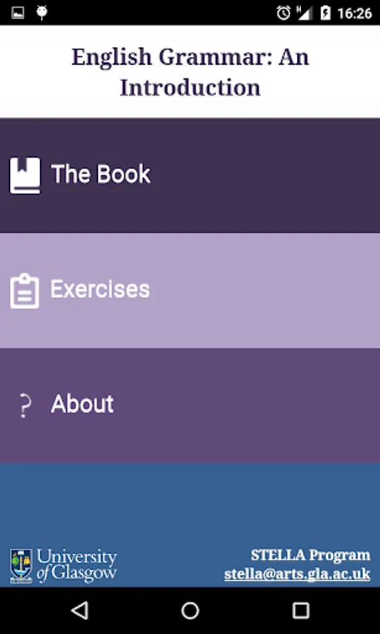 The aim of this app is to introduce you to the basic concepts underlying the grammar of Modern English. These are the grammatical rules which you follow automatically when you speak or write, but may not be able to explain or analyse. The app features a book and the interactive exercises based on it. It will enable you to learn the skills and terminology needed for grammatical analysis. It aims to describe the structure of English, not to lay down the law about "good" grammar. However, as you use it, you should become more aware of how effective communication is achieved.