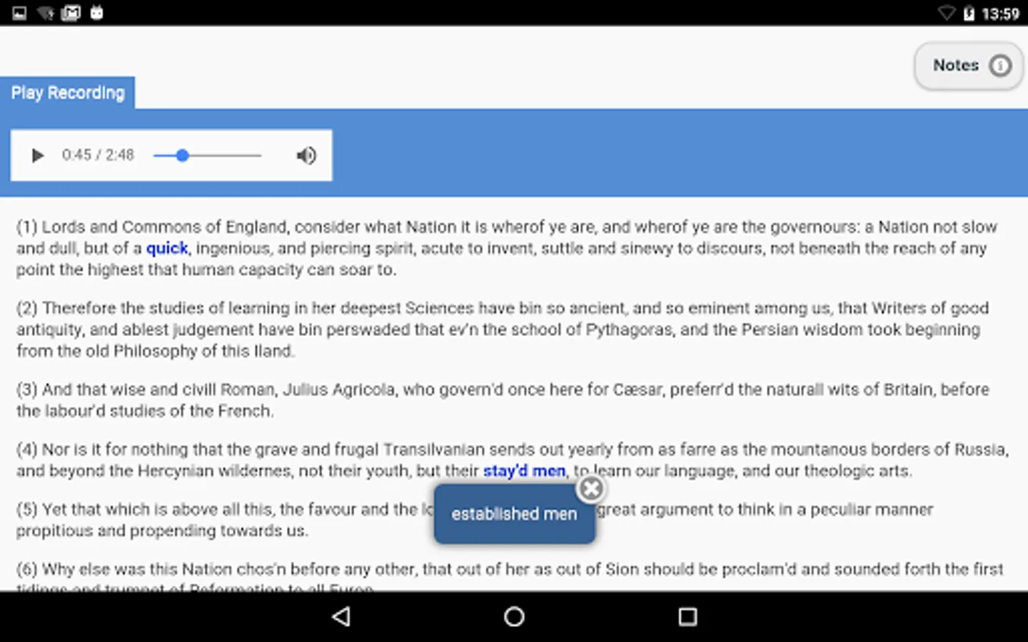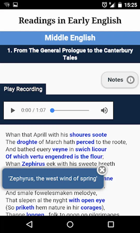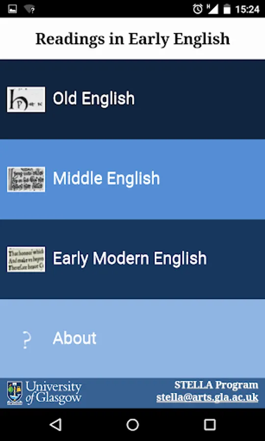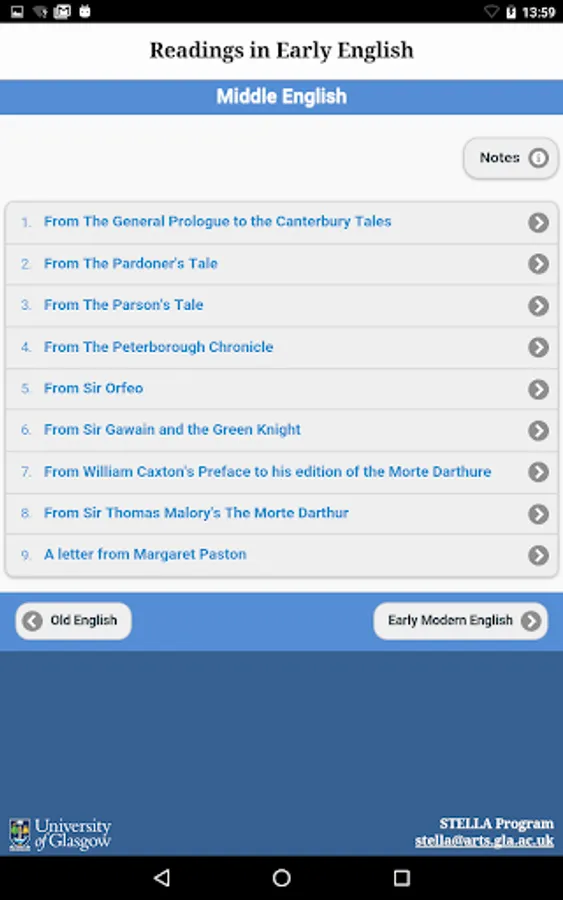 This package consists of a set of readings of Early English texts. The texts are divided into three Sections: Section A (Old English Texts), Section B (Middle English Texts) and Section C (Early Modern English Texts). However, it should be noted that texts spanning the transition between OE and ME, and between ME and EModE, are also included. For pedagogic reasons, the editorial principles adopted vary from text to text, and between sections.