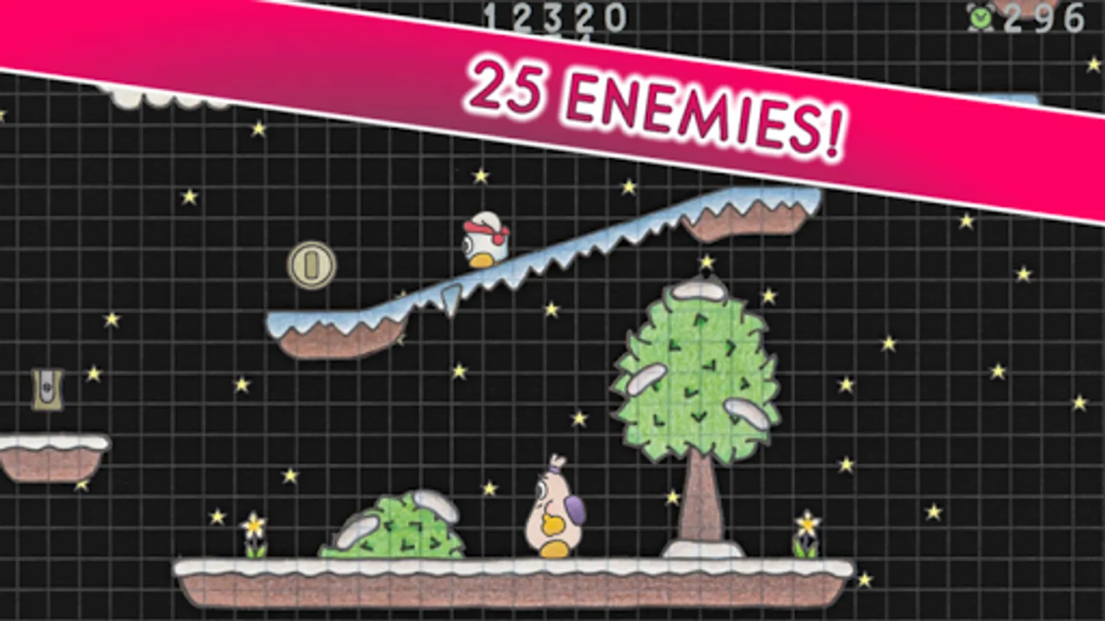 Run and jump in a unique adventure on paper through 8 worlds, 32 levels, 25 different enemies and a final boss to free your princess!