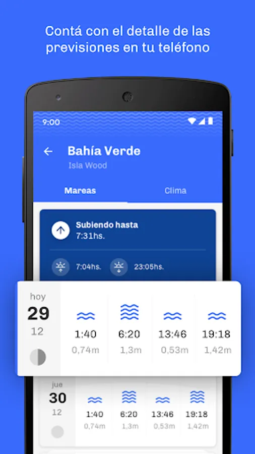 Forget about the table of paper tides, now you have on your phone or tablet the forecasts of the state of the tides from Buenos Aires to Ushuaia including 50 intermediate points, along with the lunar phases to plan your ideal day of fishing or water sports.