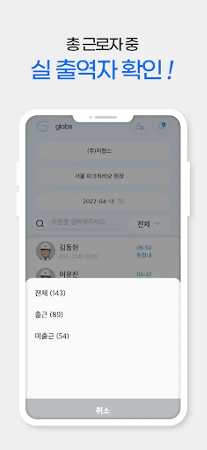 1. Commute: Location-based construction site worker arrival and departure processing and departure history (daily, monthly, yearly)