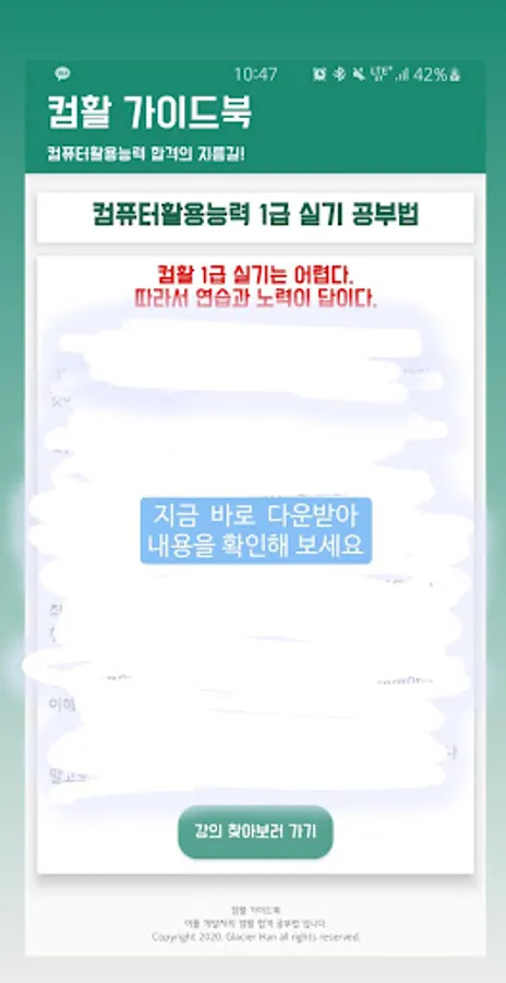 그런 분들을 위해서, 컴활 1급을 "단 2주" 만에 합격하는데 성공한 어플 개발자가 직접 가이드북을 만들어 보았습니다.