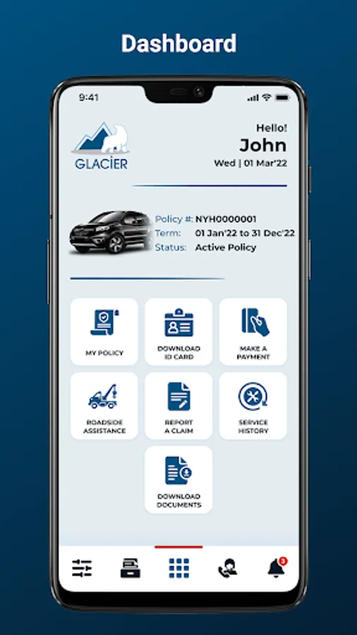 • Access and download your insurance ID card instantly after purchasing a policy from Glacier