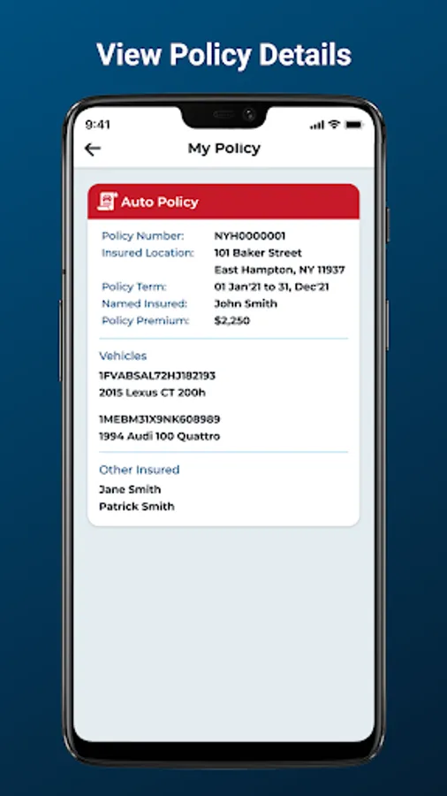 • Access your insurance service history including previous payment dates, reported claims, and more
