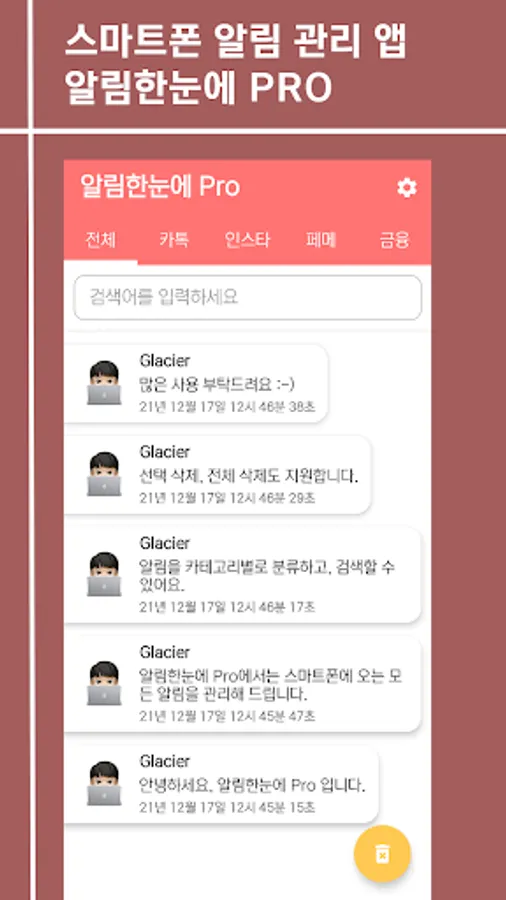 It is a pro version of the Android smartphone notification storage application 'Notification at a glance'.
