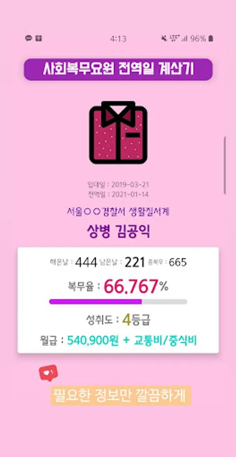 대한민국 사회복무요원 전용 전역일 계산기 - "공익 성적표"