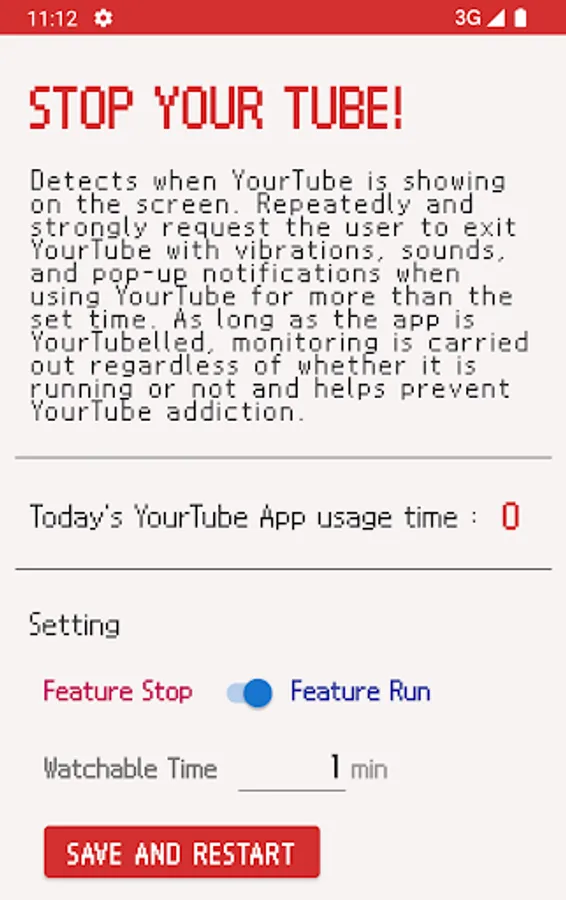 As long as the app is Installed, monitoring is carried out regardless of whether it is running or not and helps prevent your tube addiction.