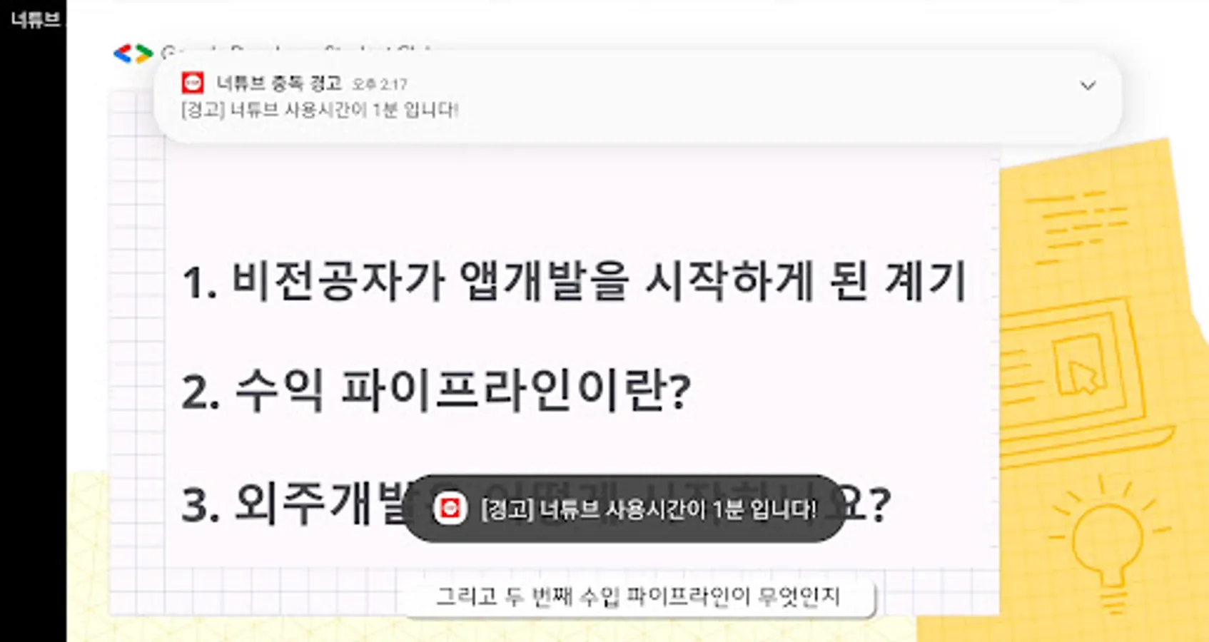 Repeatedly and strongly request the user to exit your tube with vibrations, sounds, and pop-up notifications when using your tube for more than the set time.