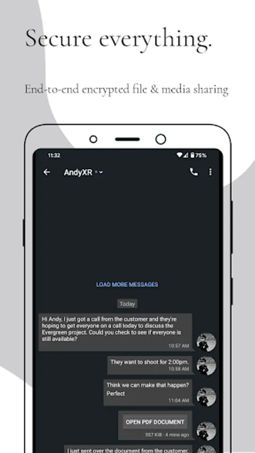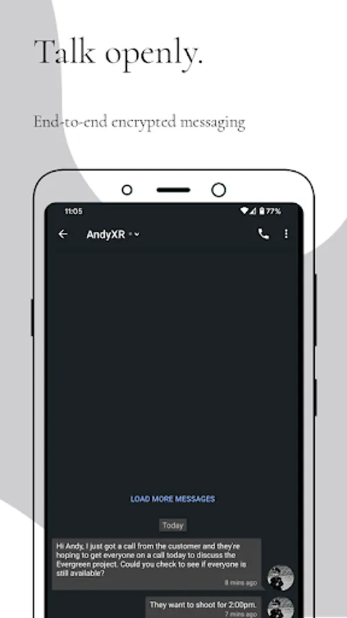 - Talk openly - End-to-end encrypted messaging, voice and video calls, and file sharing