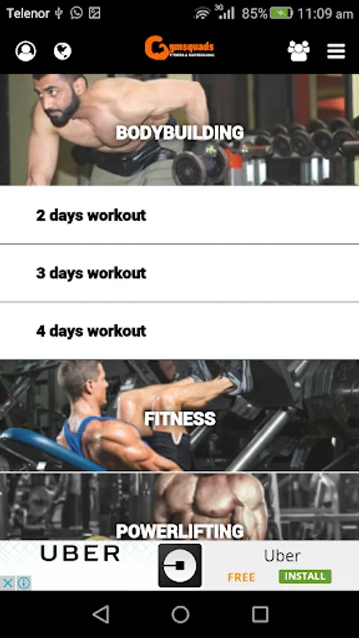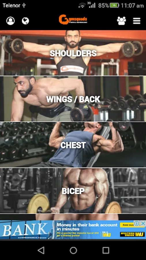 Bodybuilding & fitness - GymSquads is a free fitness and bodybuilding app, in which has vast exercises for each must group. Each exercise contains images, description and video of a personal workout trainer for free. which clearly explains how to do workouts for beginners or experts both the male and female.