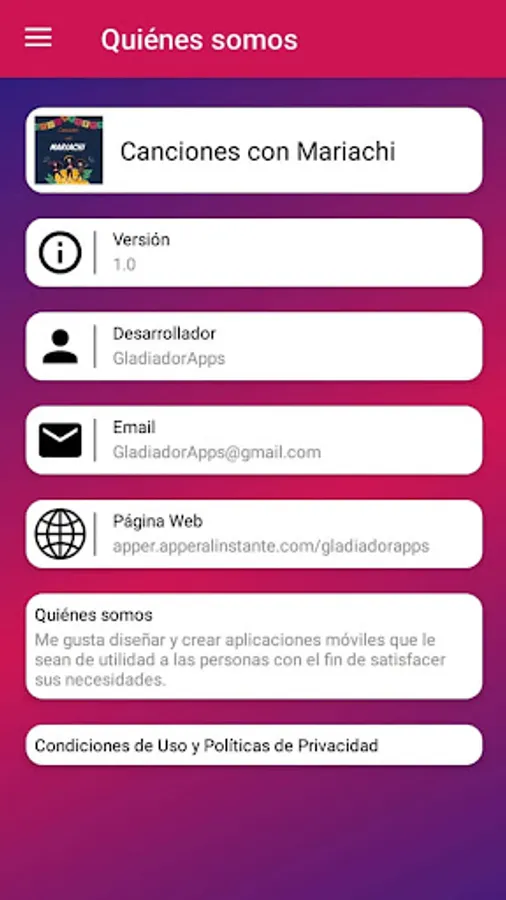 Immerse yourself in the rich musical tradition of Mexico with our exciting application of “Canciones con Mariachi”, a treasure trove of captivating melodies, designed especially for lovers of ranchera music and folklore.