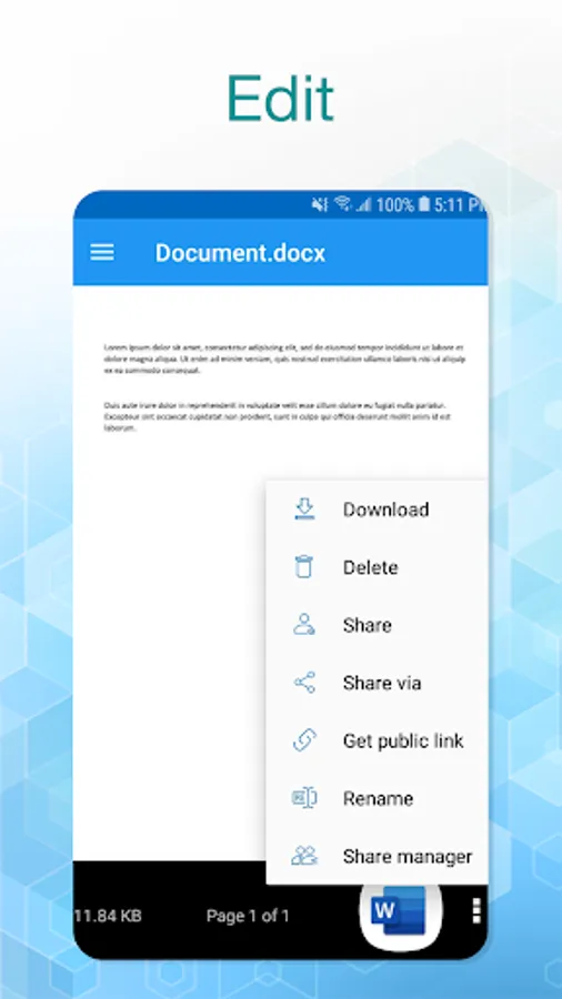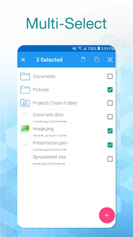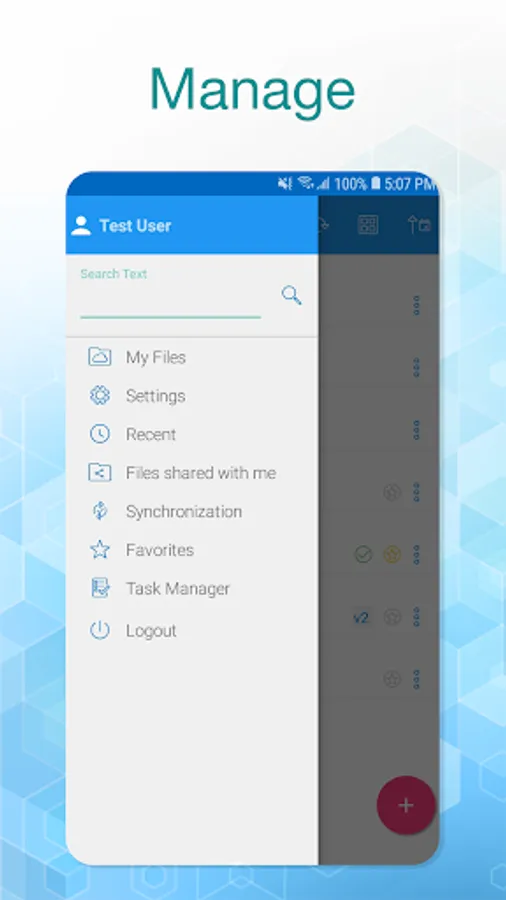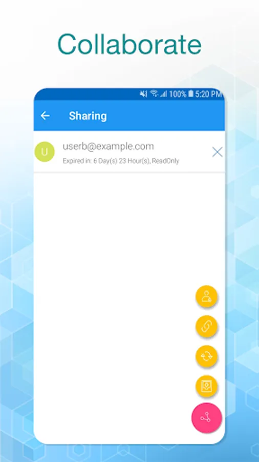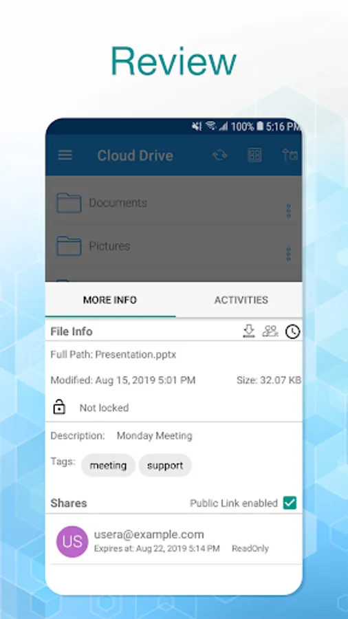 Cloud Android client shows files and folders from your company or your service provider's cloud storage solution on android devices