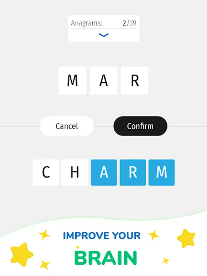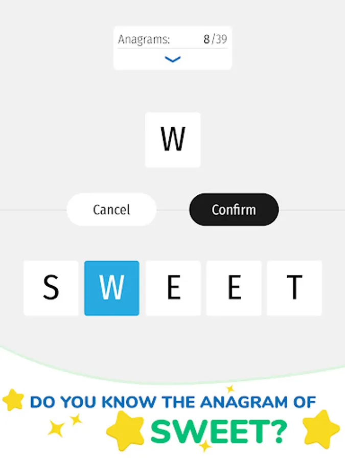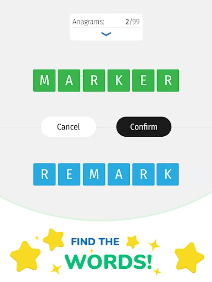 ✅ Join 3478 players who have already downloaded Anagrams and start crack as many words as possible!
