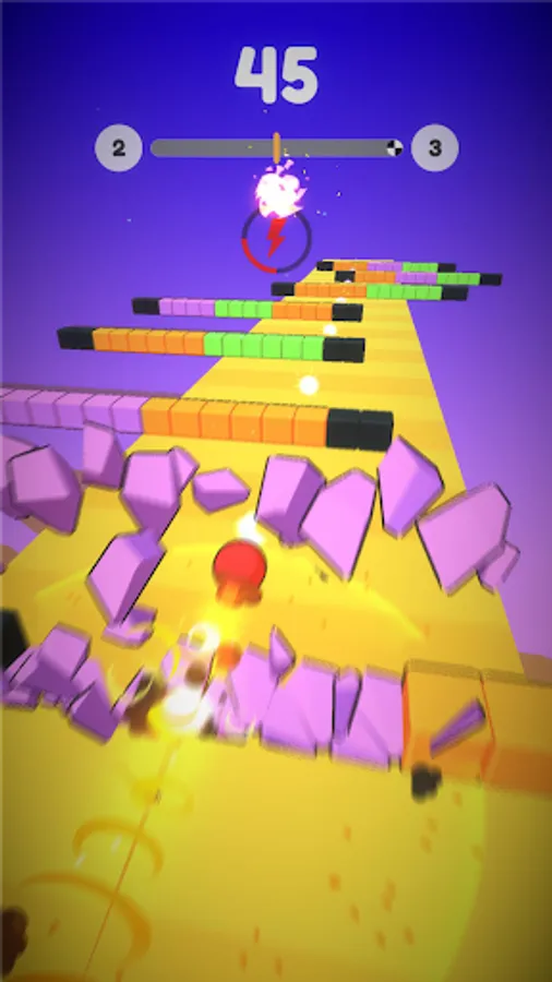 - Move the ball at the right time to destroy the obstacles of the same color.