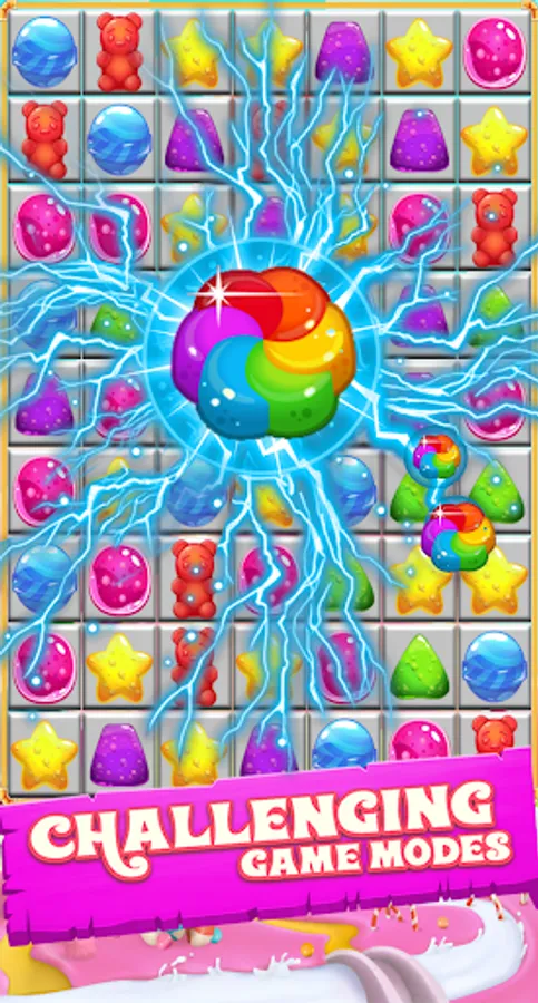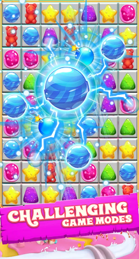 ★ this candy game provides many different targets to win: min amount of points, limited time or moves and many more!