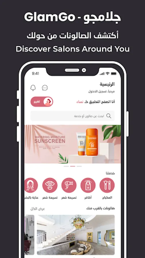 GlamGo application is a Qatari application that cares about women's and men's salons,
